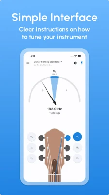 1) Tap on the guitar note to hear a tuned sound.